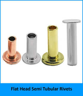 Nity półrurowe z łbem płaskim mają płytkie, puste wgłębienie na końcu (zwykle 30–50% długości trzpienia) i płaski, niskoprofilowy łeb po przeciwnej stronie. Określenie „półrurowy” wskazuje, że głębokość wydrążenia wynosi w przybliżeniu połowę całkowitej długości trzonu.
