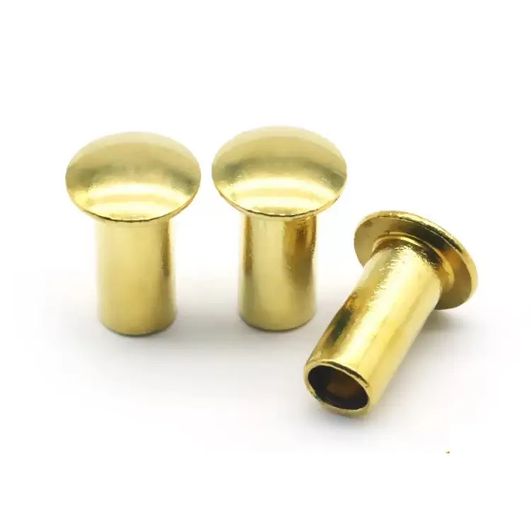 Nity półrurowe z łbem grzybkowym posiadają częściowo wydrążony trzpień, co pozwala na sprawny montaż i niezawodne mocowanie. Nity są produkowane z materiałów wysokiej jakości, którymi może być stal węglowa, miedź, mosiądz, stal nierdzewna, aluminium itp.Nit półpustymogą być używane do wielu zastosowań, takich jak bagaż, hamulce i segregatory 3-pierścieniowe i wiele innych.