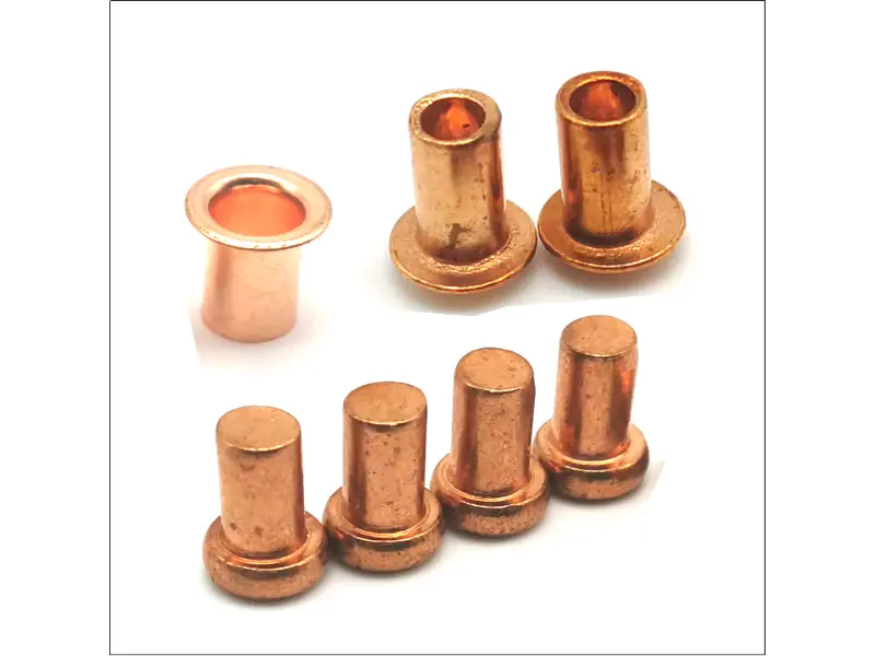 Występują we wszystkich standardowych typach. Możesz dostaćsolidne nity miedziane, które są wytrzymałe i stosowane tam, gdzie wymagana jest duża wytrzymałość złącza, na przykład w przypadku ciężkiego płótna lub pokrycia dachowego z miedzi. Tam sąNity półrurowe miedziane, które są szybsze w wiązaniu i doskonale nadają się do wyrobów skórzanych lub lżejszych zestawów. I sąpełne rurowe nity miedziane które działają jak tuleje lub czopy. Rodzaje łbów również się różnią – łeb okrągły, łeb płaski, wpuszczany – w zależności od tego, czy nit ma być widoczny, czy też osadzony równo.
