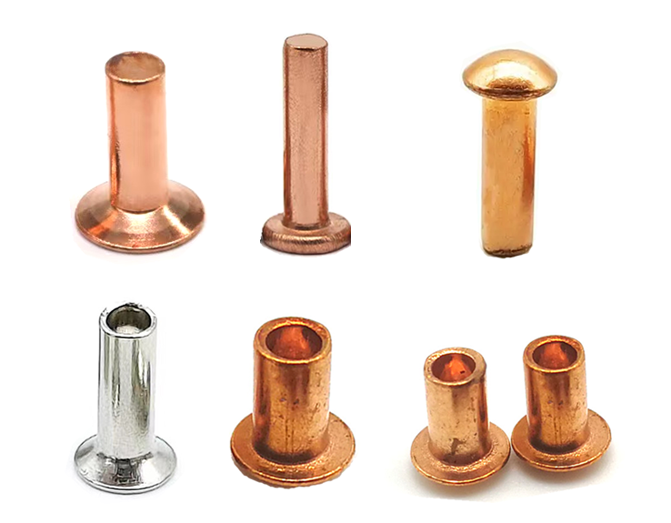 Nuto miedziane, w tym:miedziane stałe nity, NITY MIPOWE SYMO TUBULE, Płaska głowa miedziana, okrągłe nity miedziane, Zwykłe nity miedziane, Grzybowe nity miedziane, Nutki miedziane na głowicy patelni, kratownicy miedziane nity miedziane, uniwersalne nity miedziane itp.
