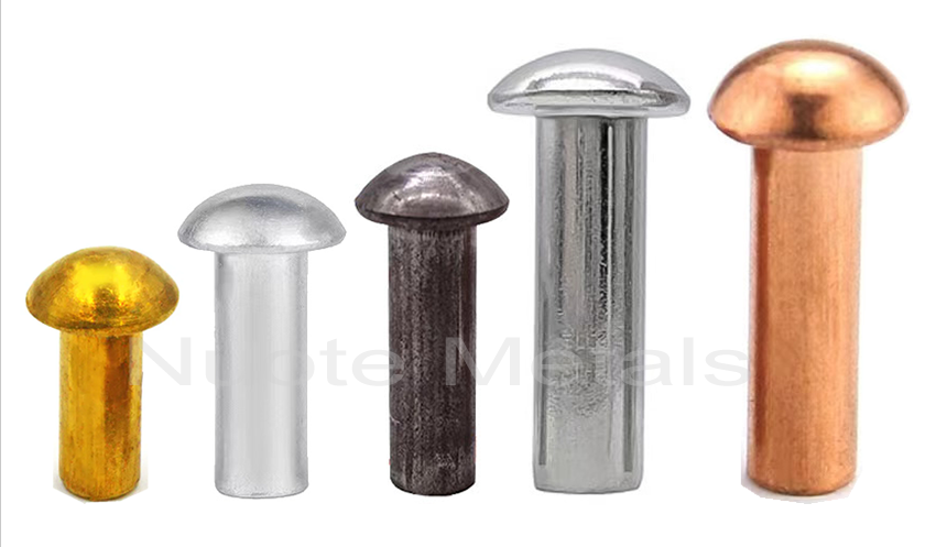 Okrągła głowa solidne, Solidne nity głowicy grzybowej, Panecz głowica solidne nity, kratownicy stałe nity,Solidne nity uniwersalne, w różnych materiałach, takich jak mosiądz, stal (żelazo), stal nierdzewna, aluminium, miedź.