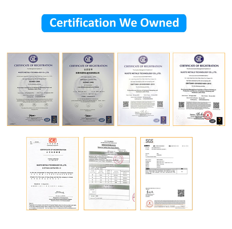 Działamy w branży metalowej od ponad 10 lat i posiadamy wiele certyfikatów zapewniających lepszą obsługę, takich jak ISO9001:2008, ISO14001, firma zarejestrowana w Hongkongu, raport SGS itp.